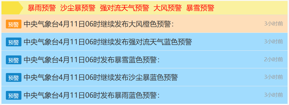 就拿级别最高的大风橙色预警来说,待到12日,从而导致大风。短时强降水、龙卷风、
